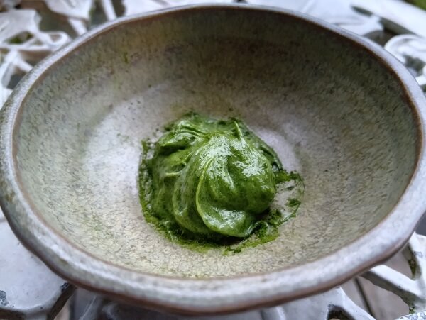 抹茶にも似た清々しい青野菜の風味がマヨの塩気を包み込むような感じで、とっても味わい深いディップになりました。