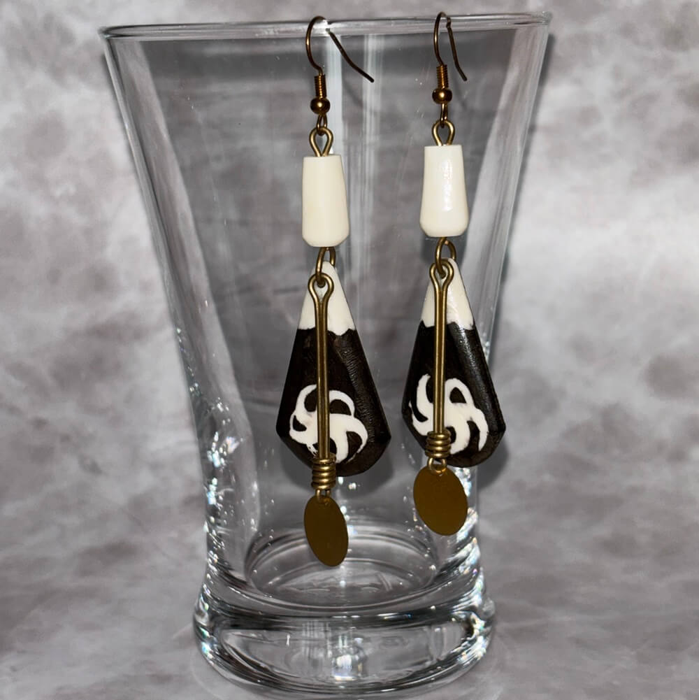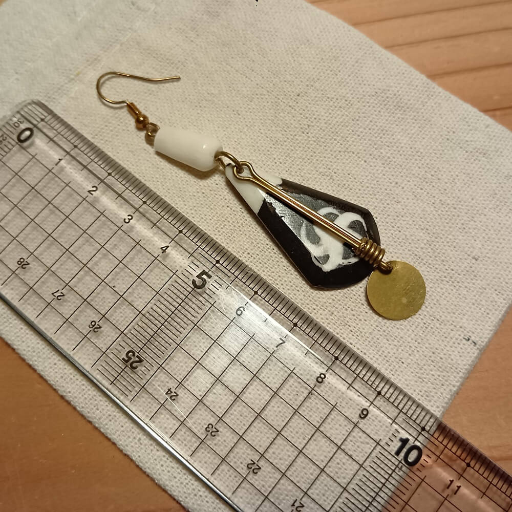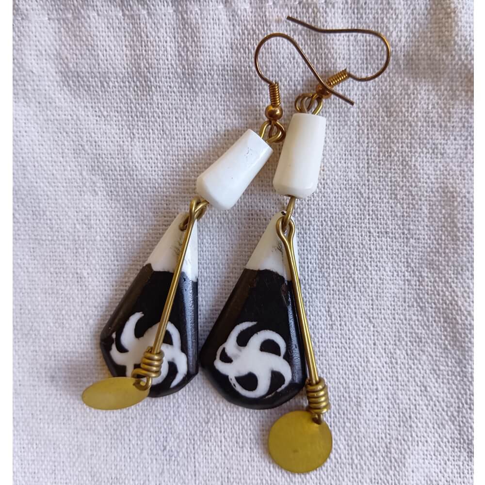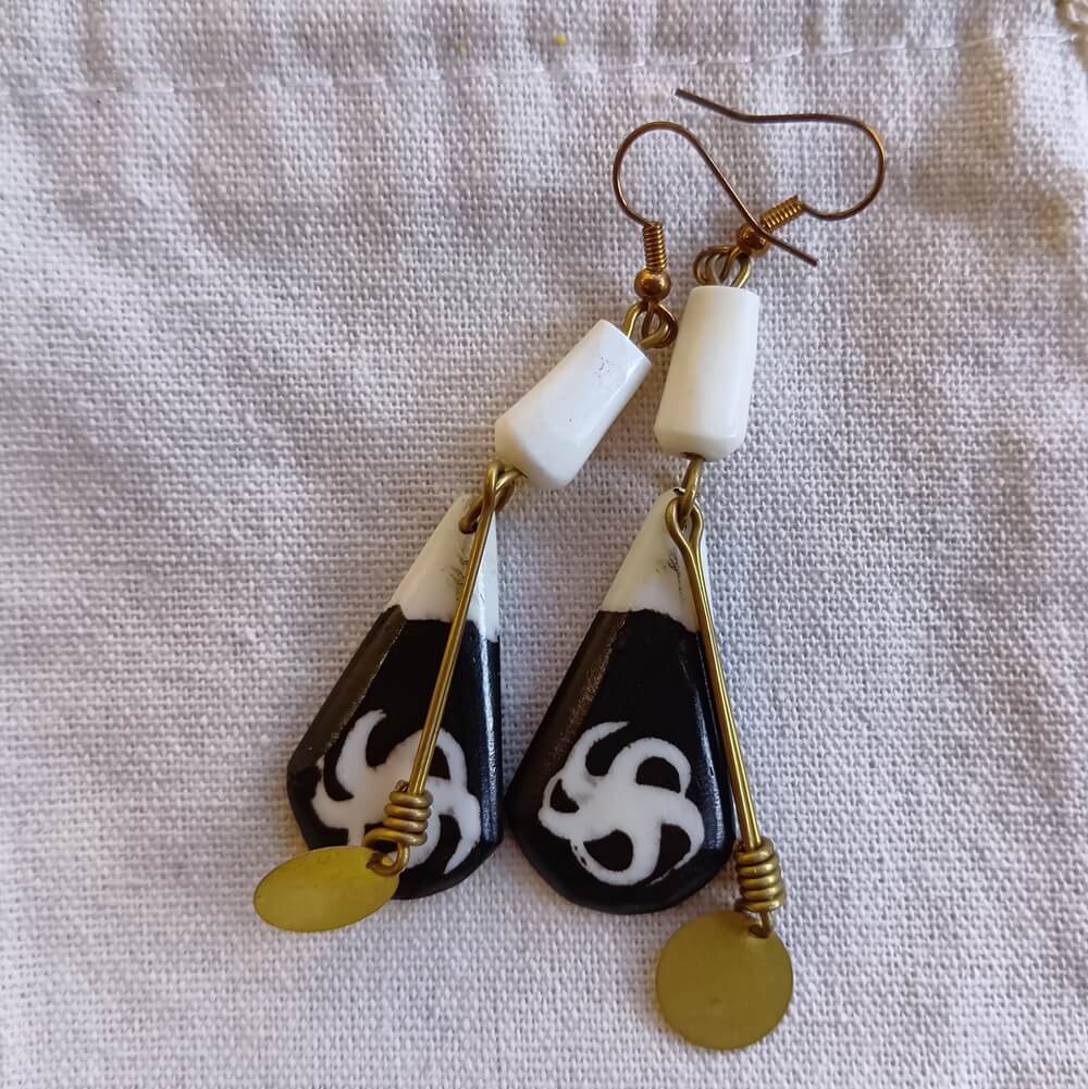 アフリカの伝統素材である動物の骨を使ったピアス。ブラックとホワイトのコントラストが鮮やかで、エキゾチックな雰囲気が漂います。アーティスティックで個性的な耳元を演出してくれます。