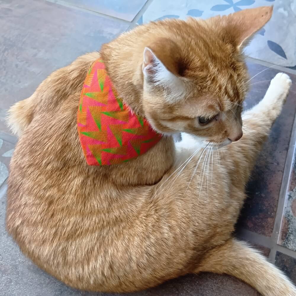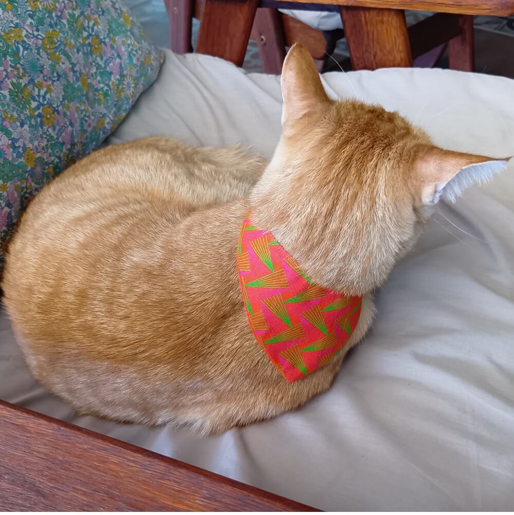 このバンダナの背後には、猫ちゃんやワンちゃんの幸せを願いながら、似合いそうな布を探し回った人の想いがあります。