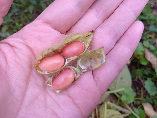 大分成熟してきて、中にはこんなにキレイなオレンジ色の枝豆も。