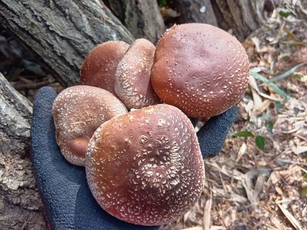 立派な原木シイタケが、今日も袋いっぱいに採れました❤