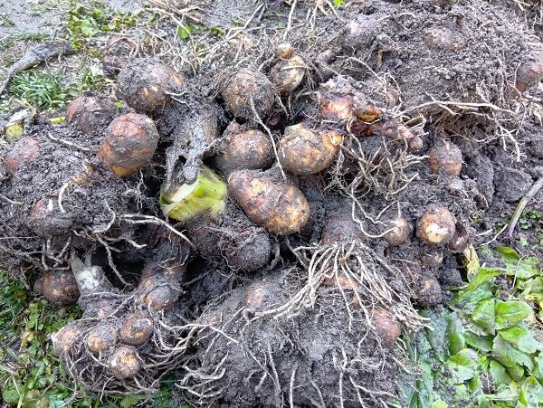 過酷な環境で立派に育った自然農の里芋
